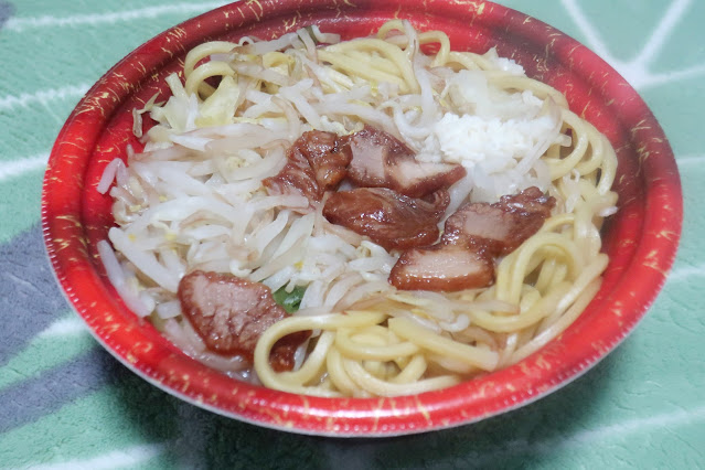 にんにく醤油とんこつラーメンの製造はタカラ食品。トップバリュブランドの二郎系ラーメンで、メーカー製の安い具材をツギハギして無理くり作った感はありますが、麺のワシワシ感とボリュームは結構しっかりしていました。スープは結構まろやかテイスト。チープななんちゃって二郎感は拭いきれませんが、手軽にレンチンで食べられる二郎風ラーメンを求めていたという人には刺さるものがあるのかもしれません。